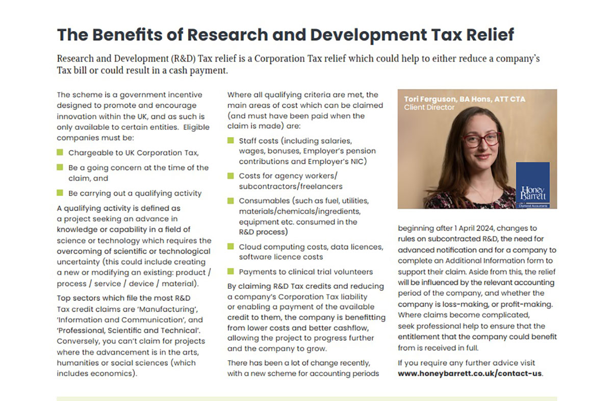 In the latest edition of Business Edge magazine, Client Director, Tori Ferguson, shares how R&D Tax Relief could help reduce a company’s tax bill or result in a cash payment.