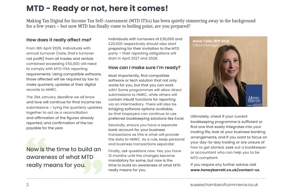 In the latest edition of Business Edge magazine, Client Manager, Anna Tyler, shares her tips on how to prepare for Making Tax Digital and who will be impacted.